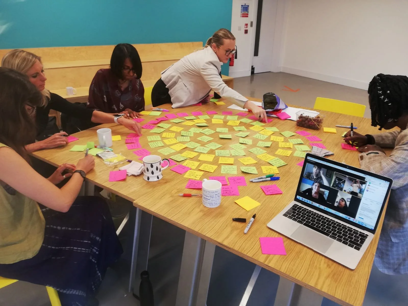 Next, using different colour post-its, surround the WHYs with HOWs – ways that you could change things for the better or begin to solve the problems you’ve identified.